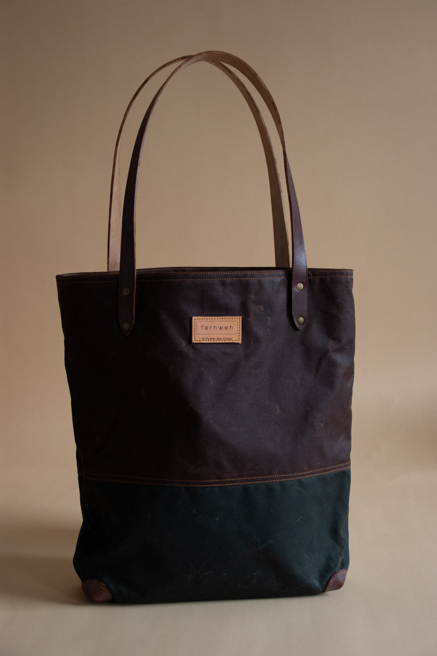 MORVEN Waxed Cotton Tote Bag - Bracken/Forest